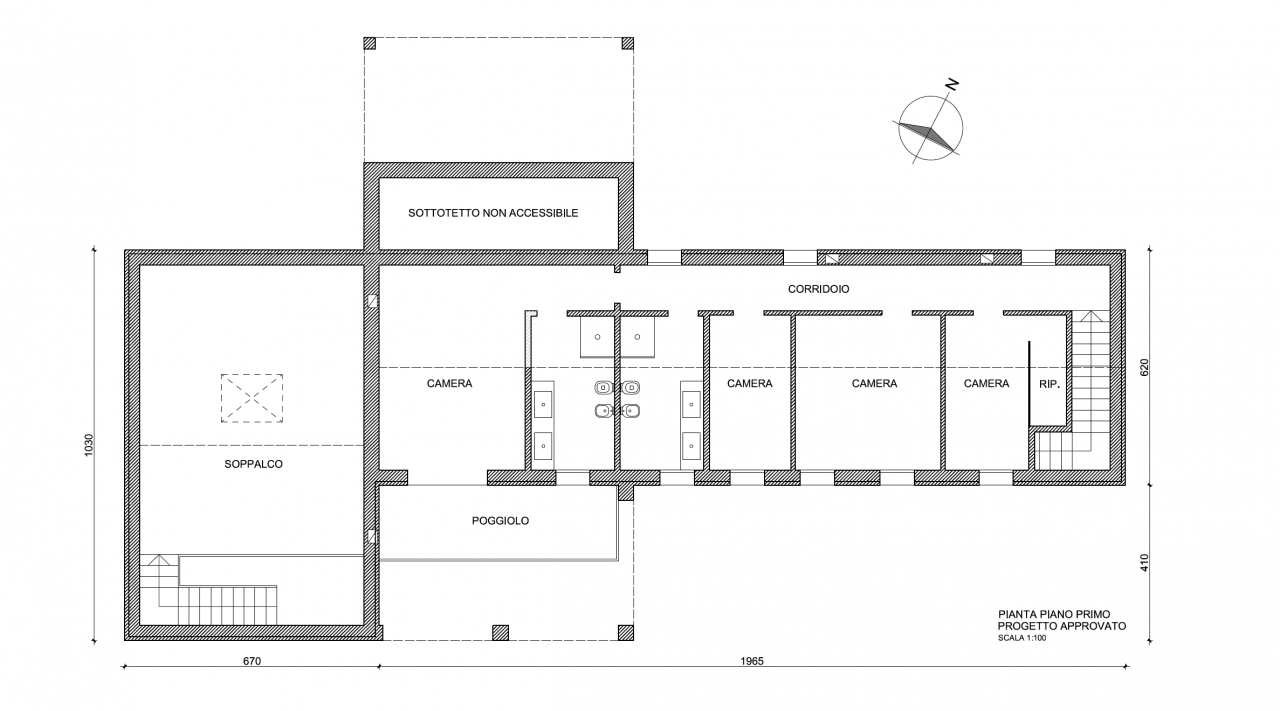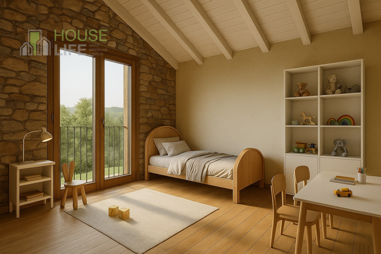 Piano primo: 4 camere, 2 bagni, terrazza/loggia con affaccio sulla vallata