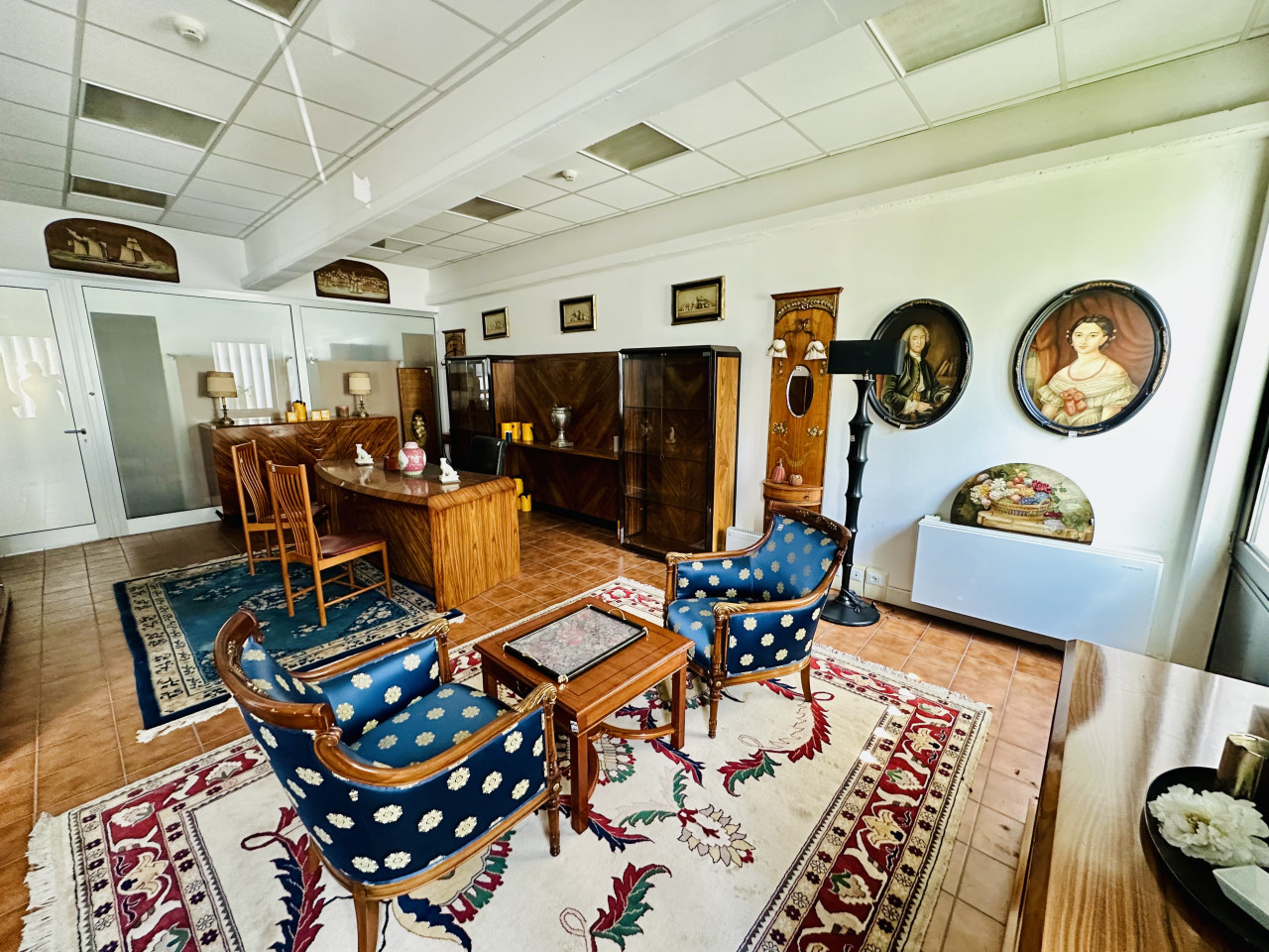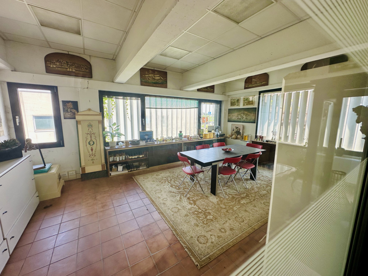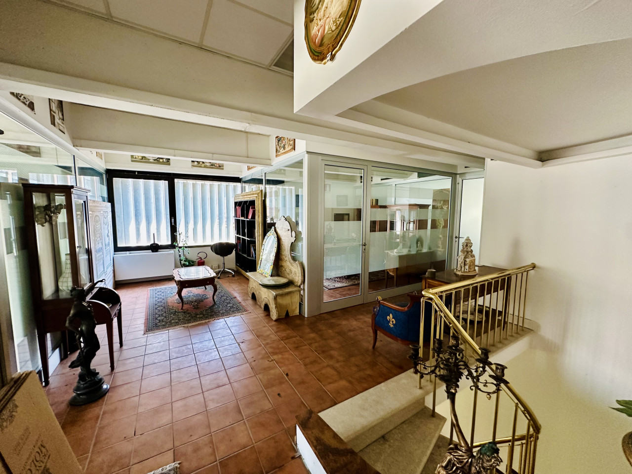 Piano primo ospita circa 450 mq tra uffici e locali accessori in ottime condizioni, già predisposti per accogliere team di lavoro o clienti.