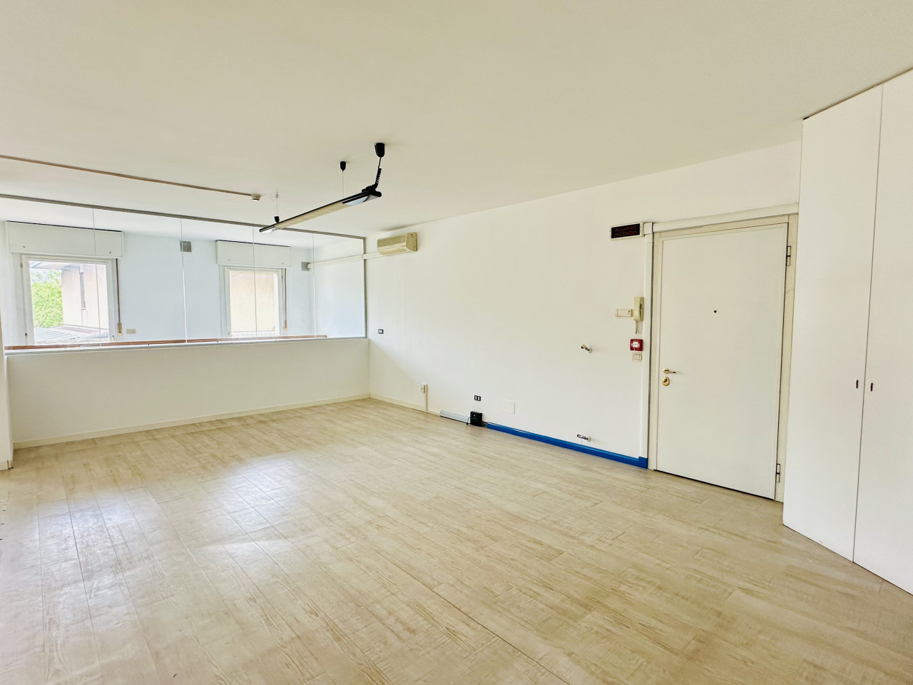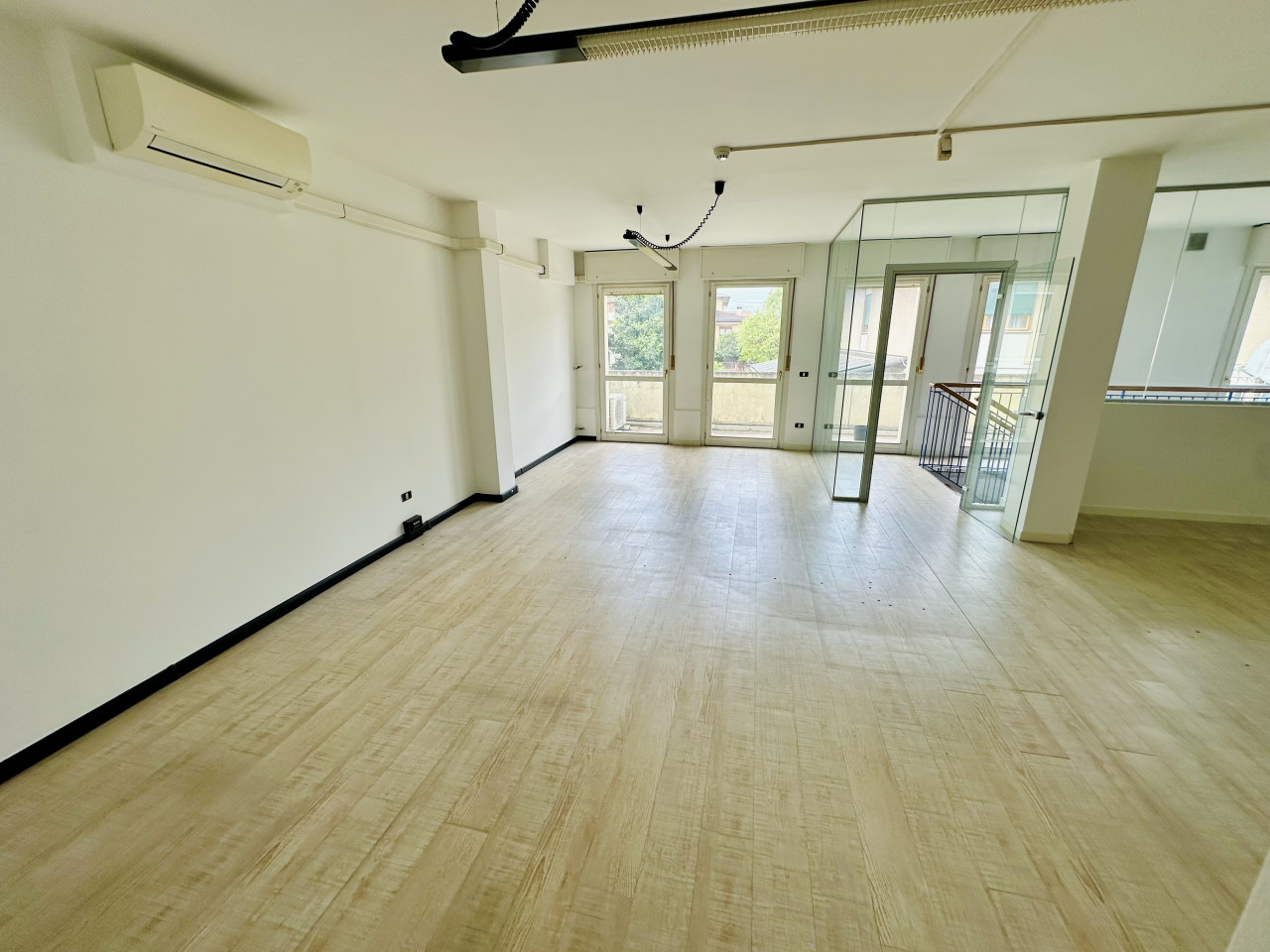Gli spazi interni offrono una luminosa superficie open-space da personalizzare secondo le specifiche necessità, servizio e terrazzo.